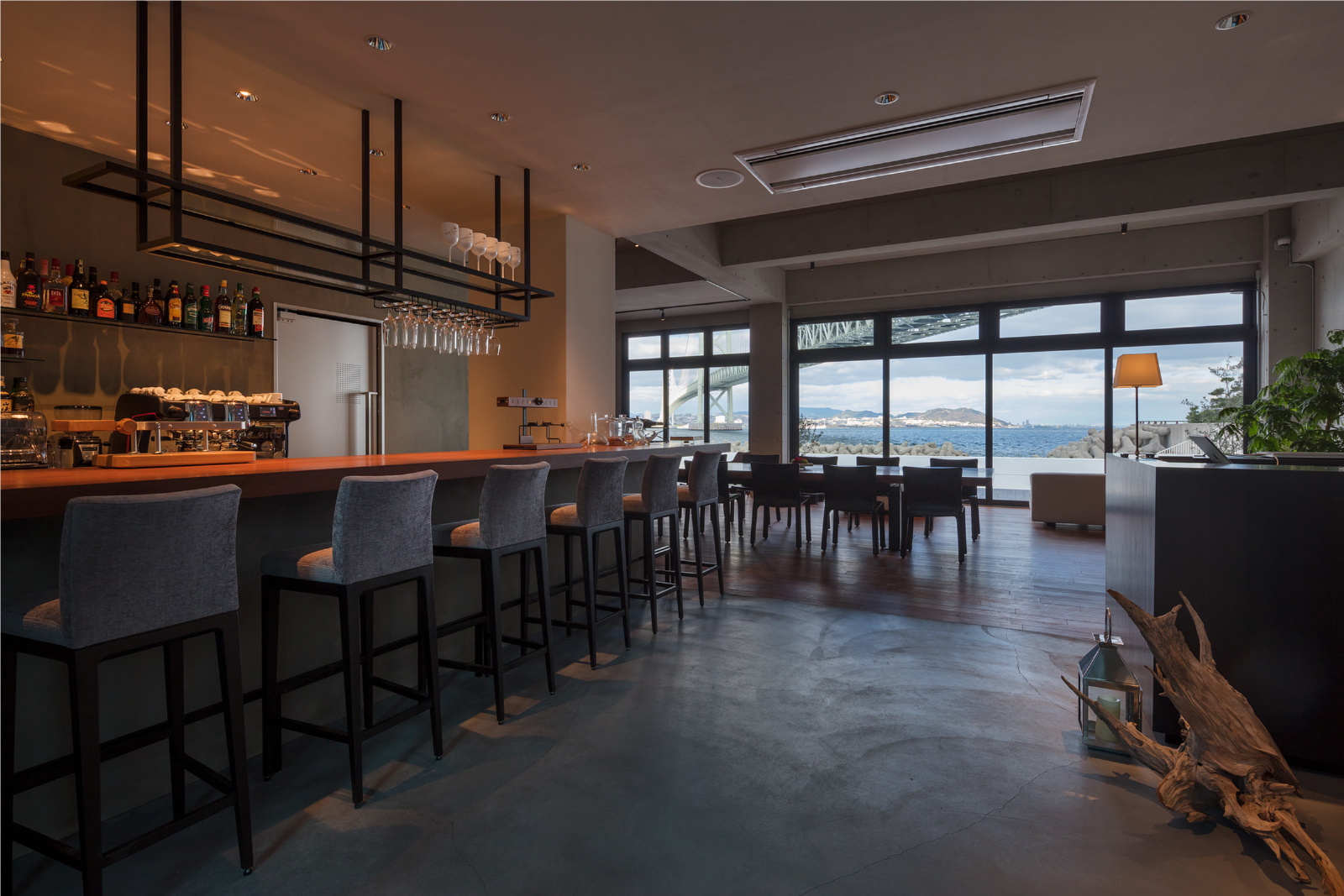 昼は海の光りを店内にふんだんに取込み、潮風が心地よい 爽やかな空間に。