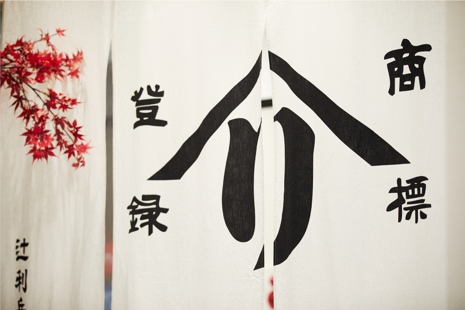茶寮の入り口には間口いっぱいに暖簾を吊るし、茶寮風景は閉鎖的に魅せることで京都らしさを。