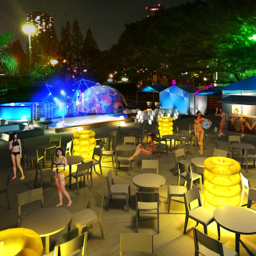 都市の中に埋もれるプライベートビーチは『』(鍵括弧)のように環境空間として独立し、様々な『』を体感し、様々な『』をメッセージとして発信する、都市型ビーチリゾート。