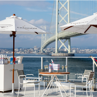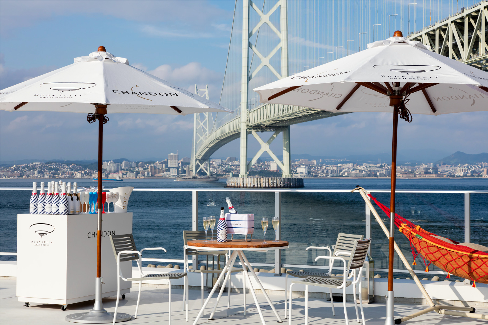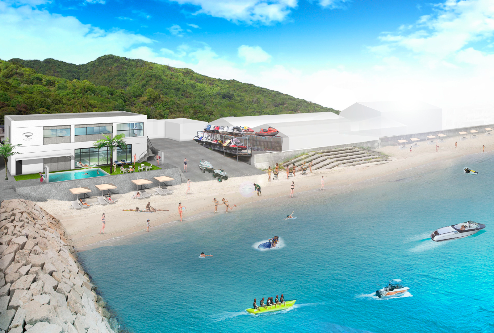 明石海峡大橋のたもと、ビーチ沿いにマリンレジャー施設の複合テナントビルとしてオープン。
