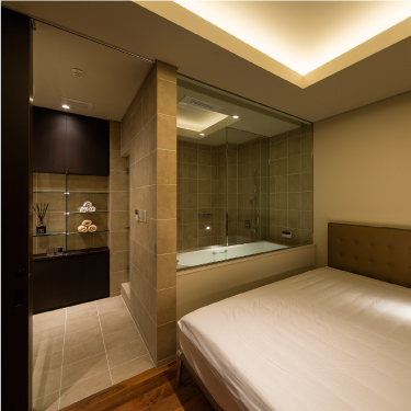 全てのテナントからは、橋を中心に空と海をフレームでトリミングされた風景が見られる。
