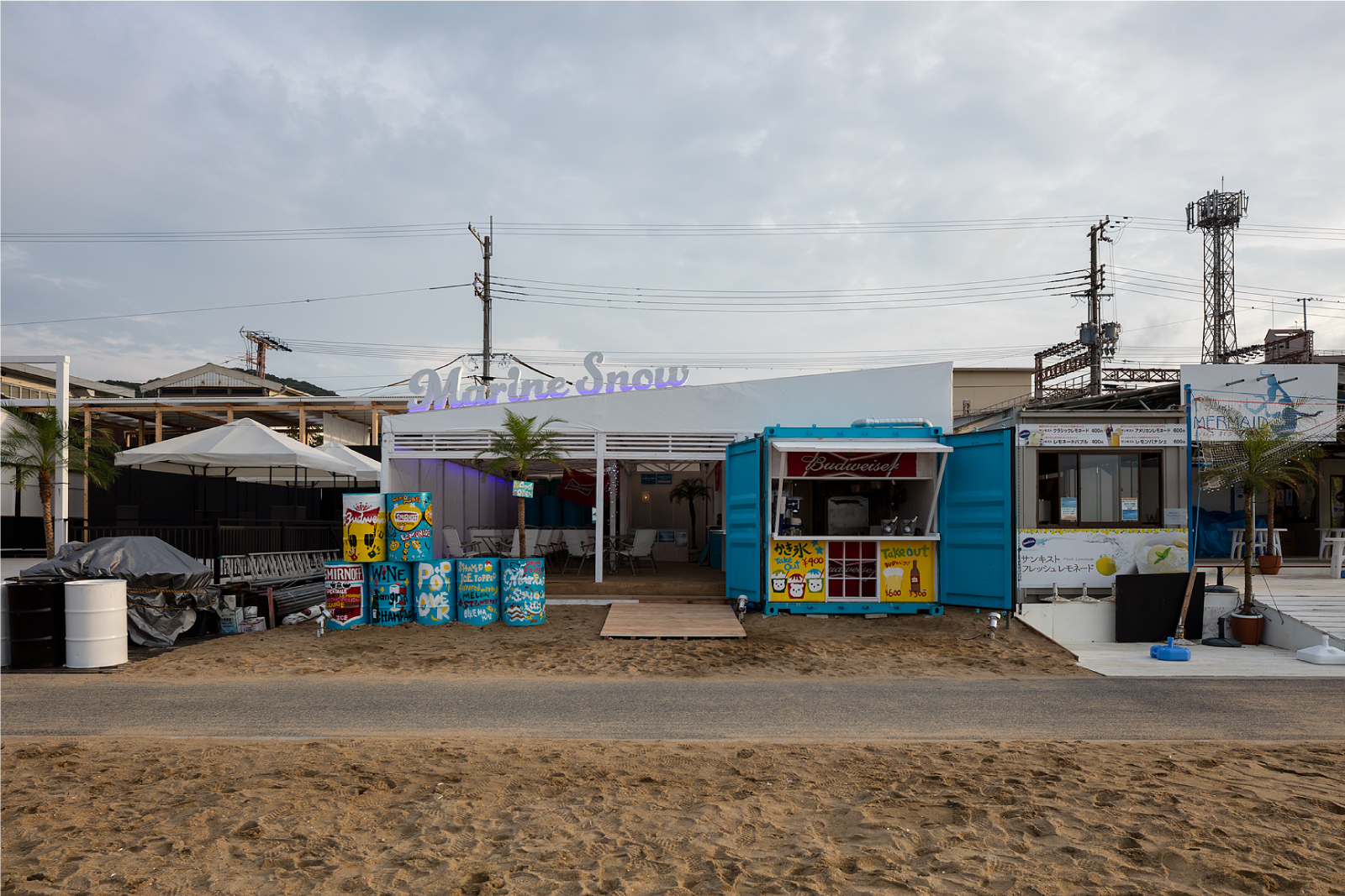 JR須磨駅前、須磨海岸沿いの「海の家」の設計。